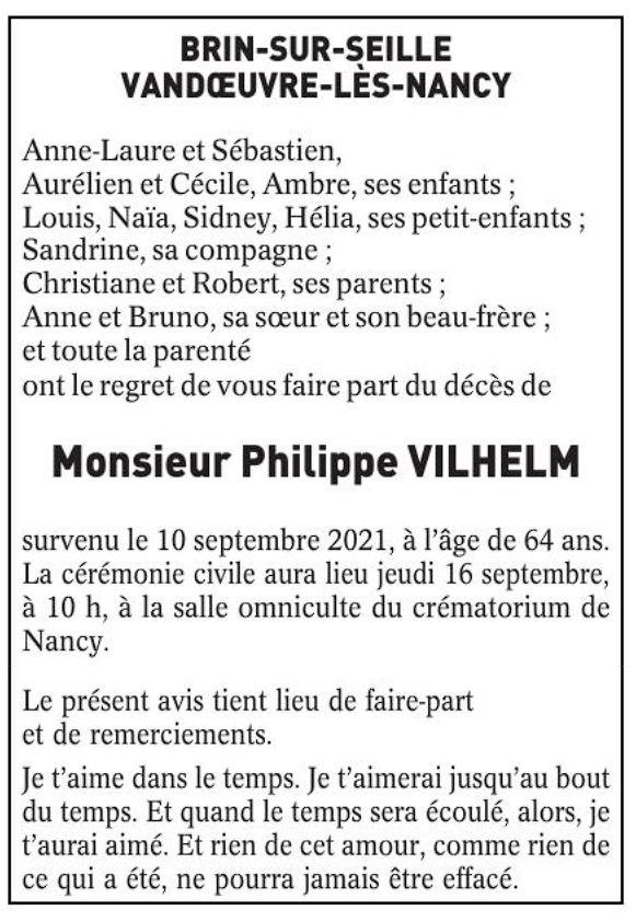 C'est avec émotion que nous avons appris le décès de Philippe WILHELM, ancien habitant de notre commune.