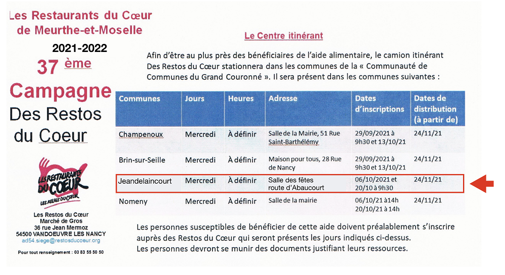 préalablement s'inscrire auprès des Restos du Coeur qui seront présents