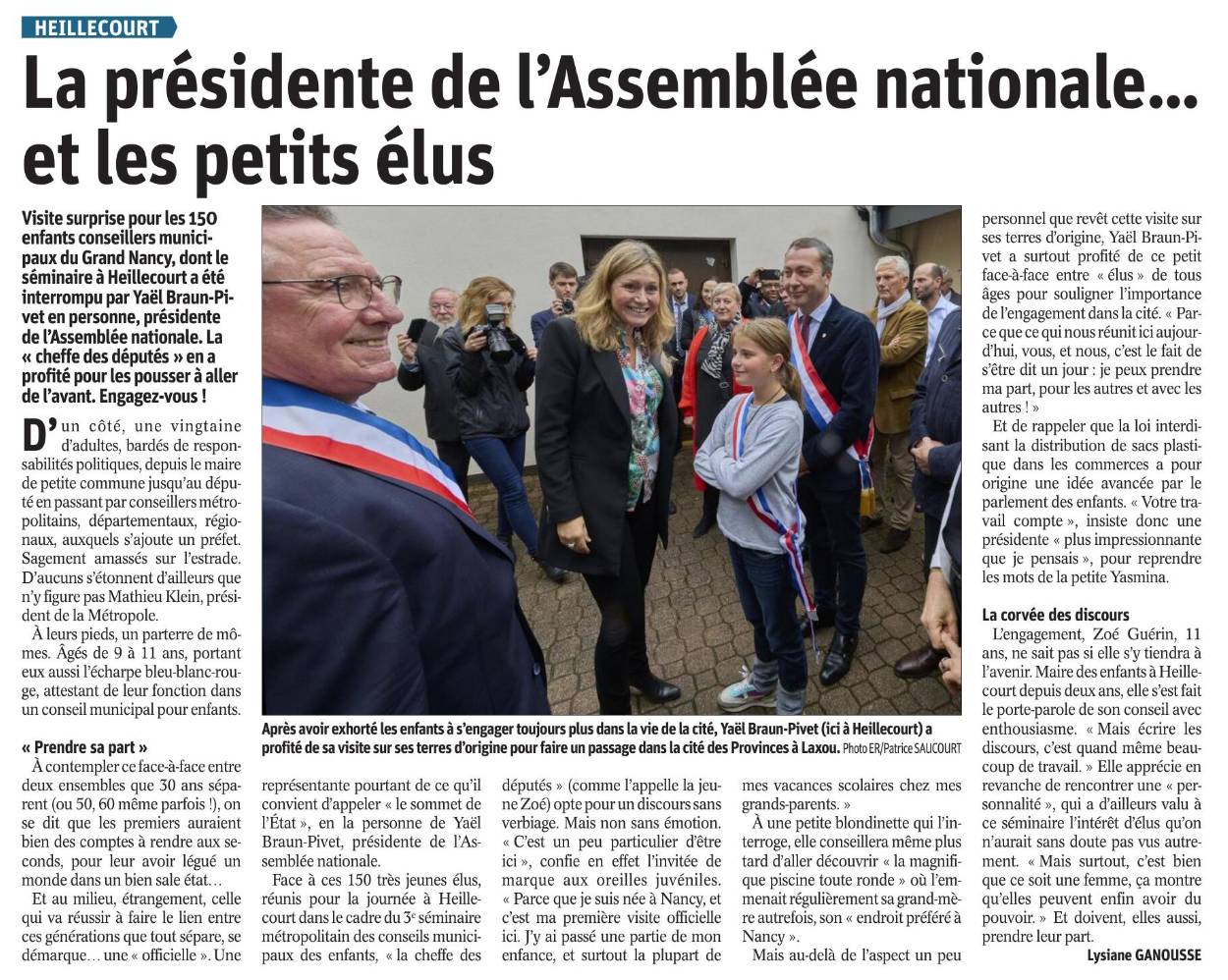 ![]() Accueillie par Monsieur Didier Sartelet maire d'heillecourt, Monsieur le député Emmanuel Lacresse et par la jeune Zoé maire élue au CME d'Heillecourt, |