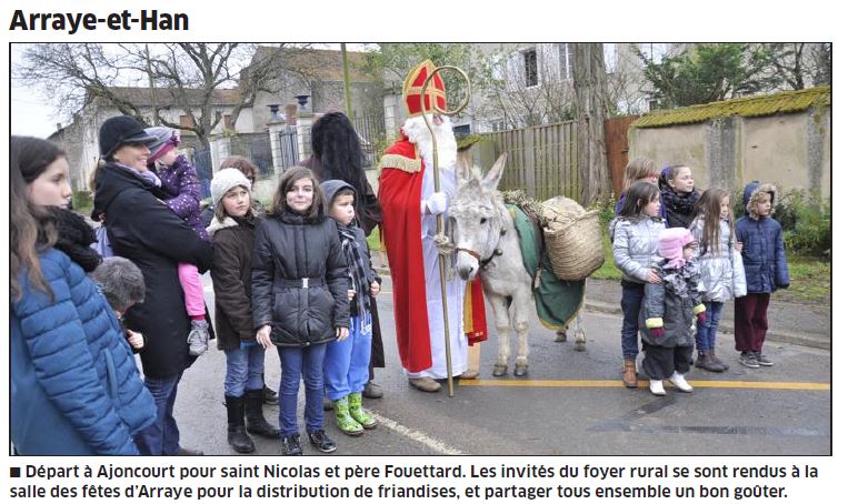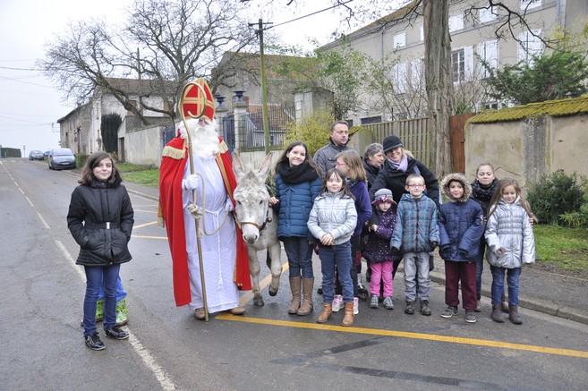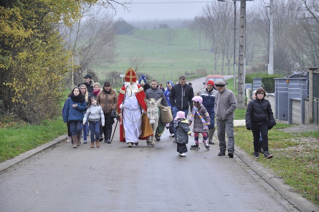 Le Saint Nicolas a fait avec les enfants et les parents le trajet d'Ajoncourt à Arraye,