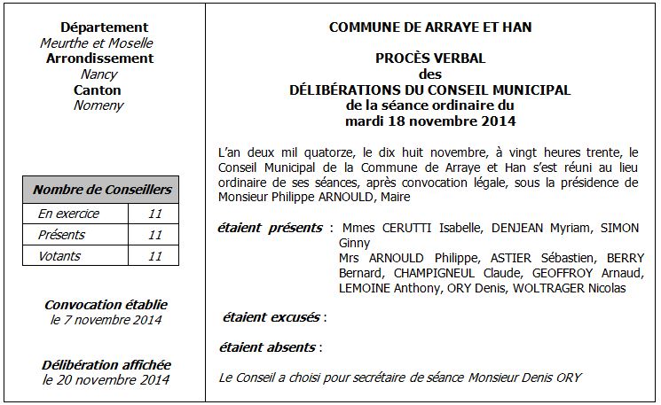 2014 et transmis au contrôle de légalité le 20 novembre 2014