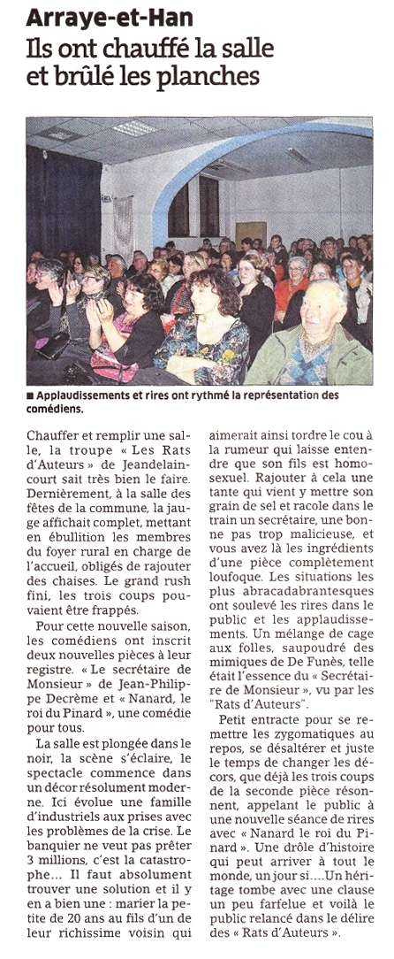 Belle prestation des Rats d'auteurs, ce vendredi 10 avril 2015