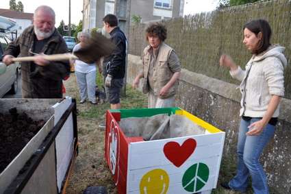 Ce mercredi 10 juin, c'est la concrétisation finale du travail de construction des bacs à fleurs.