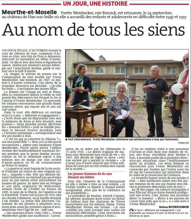La Maison d'Enfants REALISE recevait Yvette Weisbecker , née Resnik Créatrice de l'établissement et première directrice 1947 - 1957 |