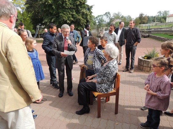 ![]() En présence des voisins Guy et Alex Lemoine, du maire Philippe Arnould, des cadres de REALISE, des enfants, du personnel, Patrick CAISSIAL salue le parcours et le dynamisme de la "Dame du chateau". |