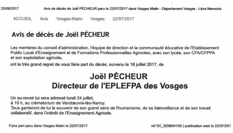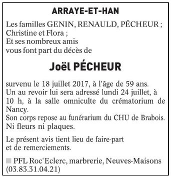 Nous avons appris avec tristesse et émotion le décès de Joël PECHEUR le mardi 18 juillet 2017.