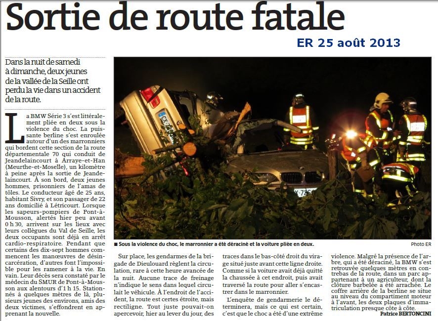 Un rappel pour les nombreux accidents en trois mois sur nos routes rectilignes qui poussent à la vitesse ....