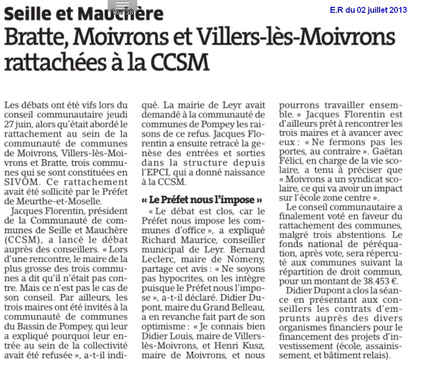 Moivrons et Villers-les-Moivrons rattachées à la CCSM