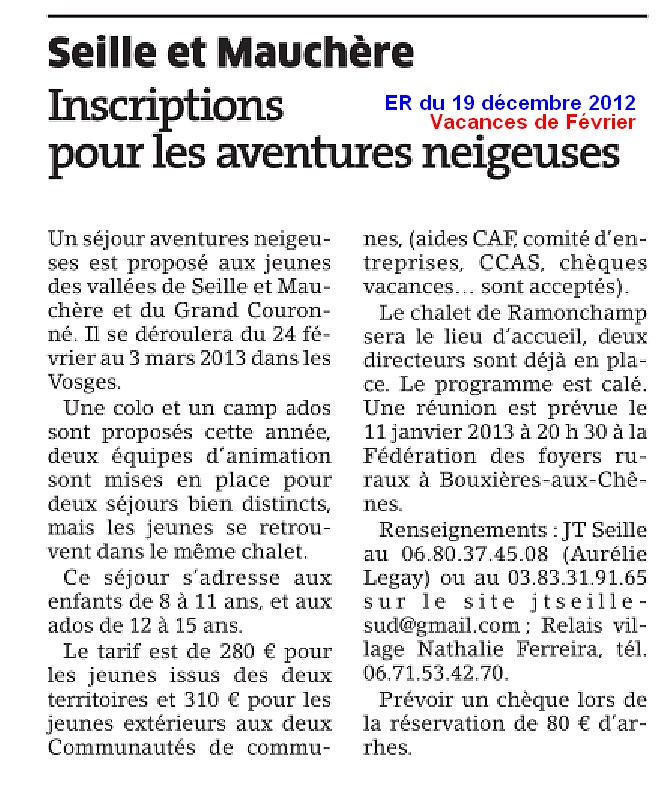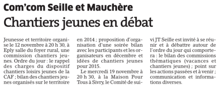 07/12/13 Les chantiers jeunes 2014 se profilent