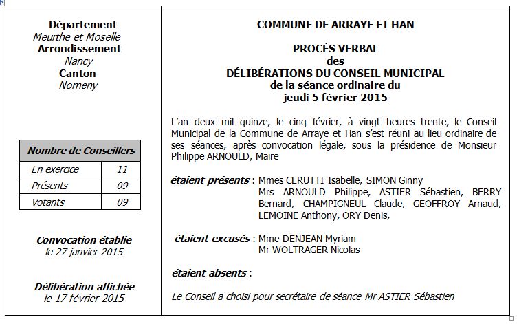 de cette séance le 17 février 2015 et transmis au contrôle de légalité le 17