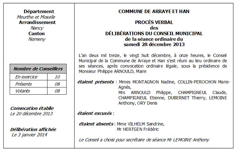 Délibérations du Conseil Municipal du 28 décembre 2013