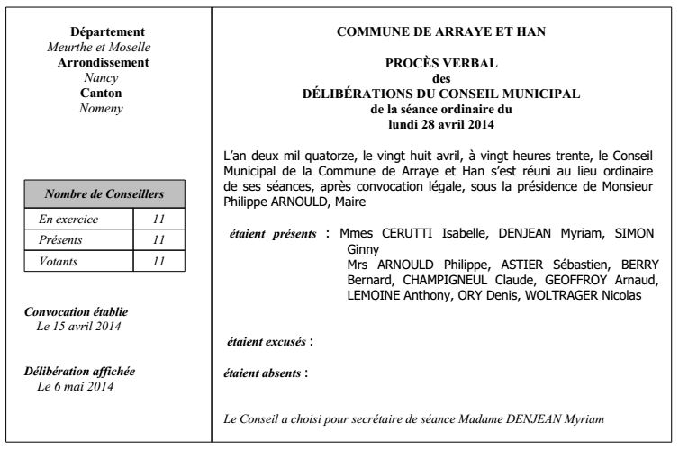 Conseil du Lundi 28 avril 2014