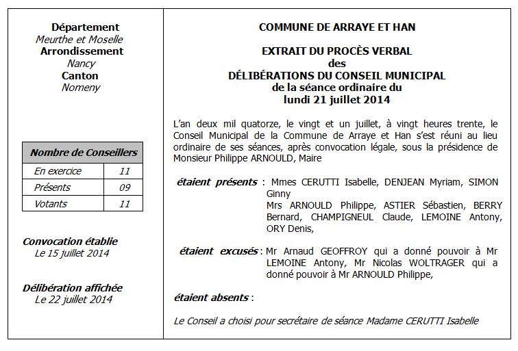 Délibérations du Conseil Municpal du 21 Juillet 2014