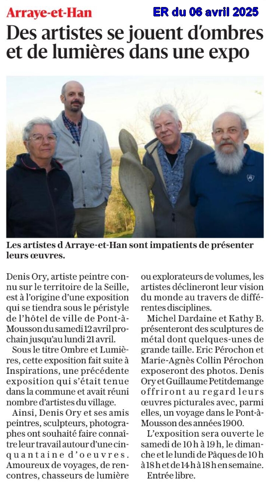 du 12 au 21 avril au Péristyle de l'Hotel de ville  Pont-à-Mousson. " OMBRES et LUMIÈRE ODJ Prochain Conseil Municipal