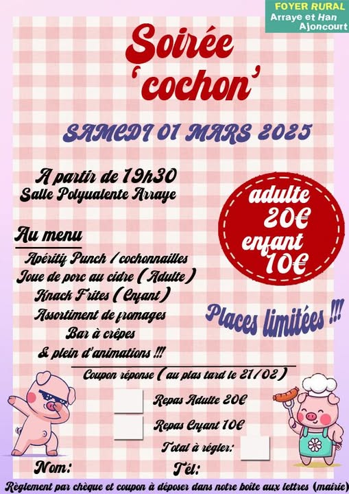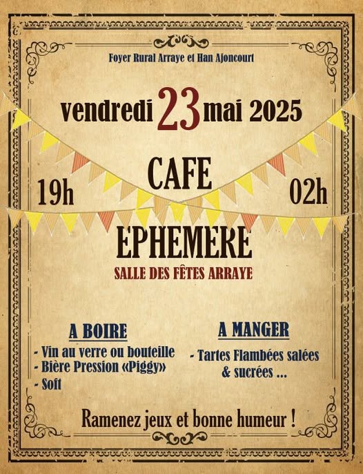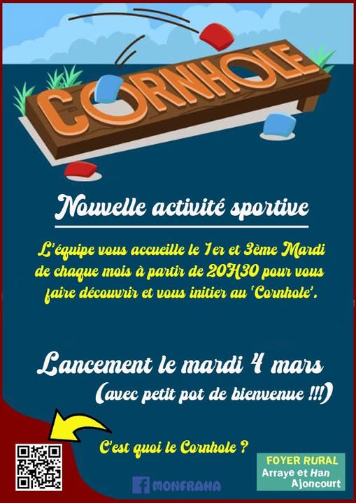 28 mai 20h à la salle  d'Arraye pour des parties de Cornhole 23 mai 2025