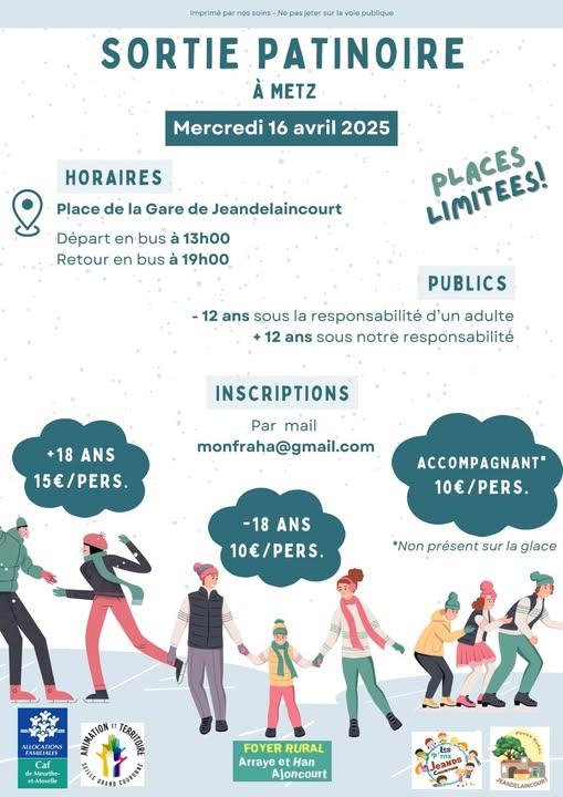 Inscriptions Sortie patinoire à Metz le Mercredi 16/04/25