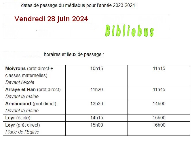 BiblioBUS tous les Lundi de 13h30 à 19h et jeudi de 13h30 à 18h