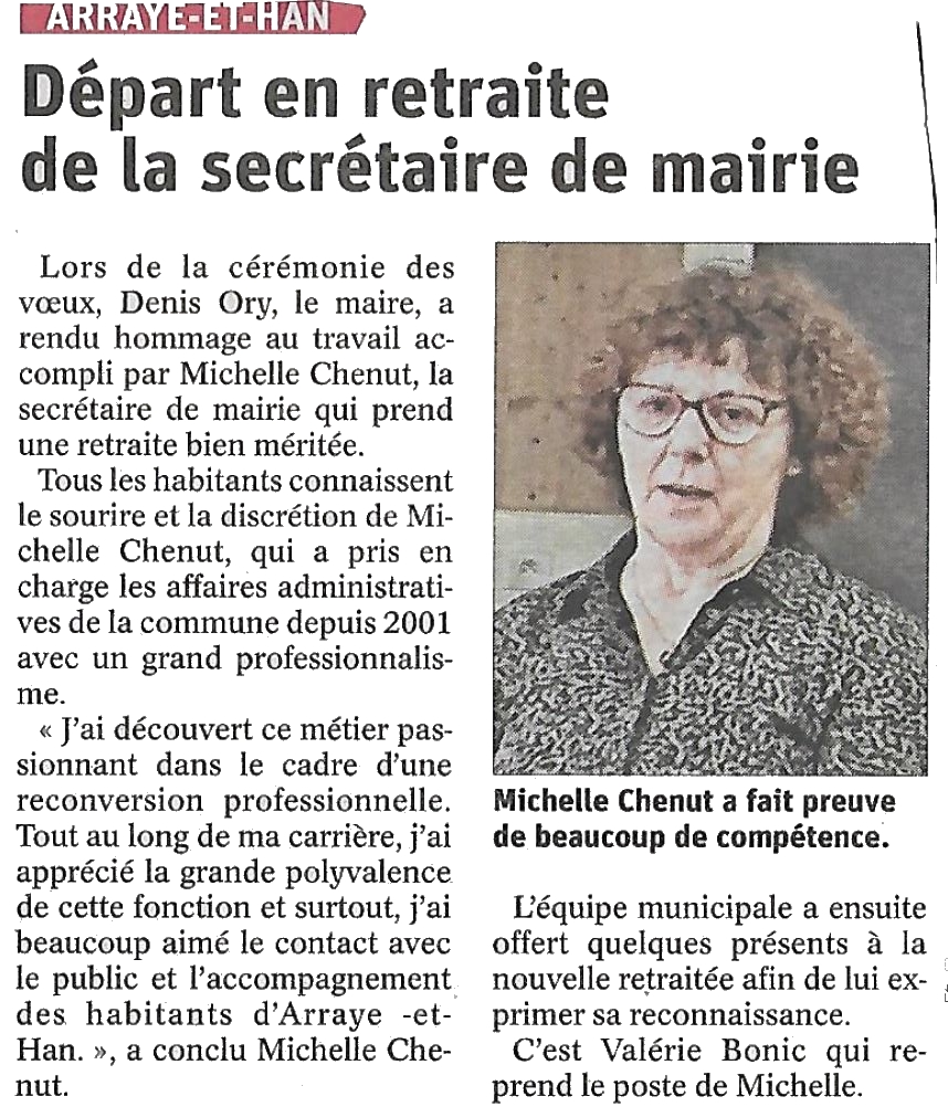 nous souhaiterons  une joyeuse retraite à Michèle CHENU.